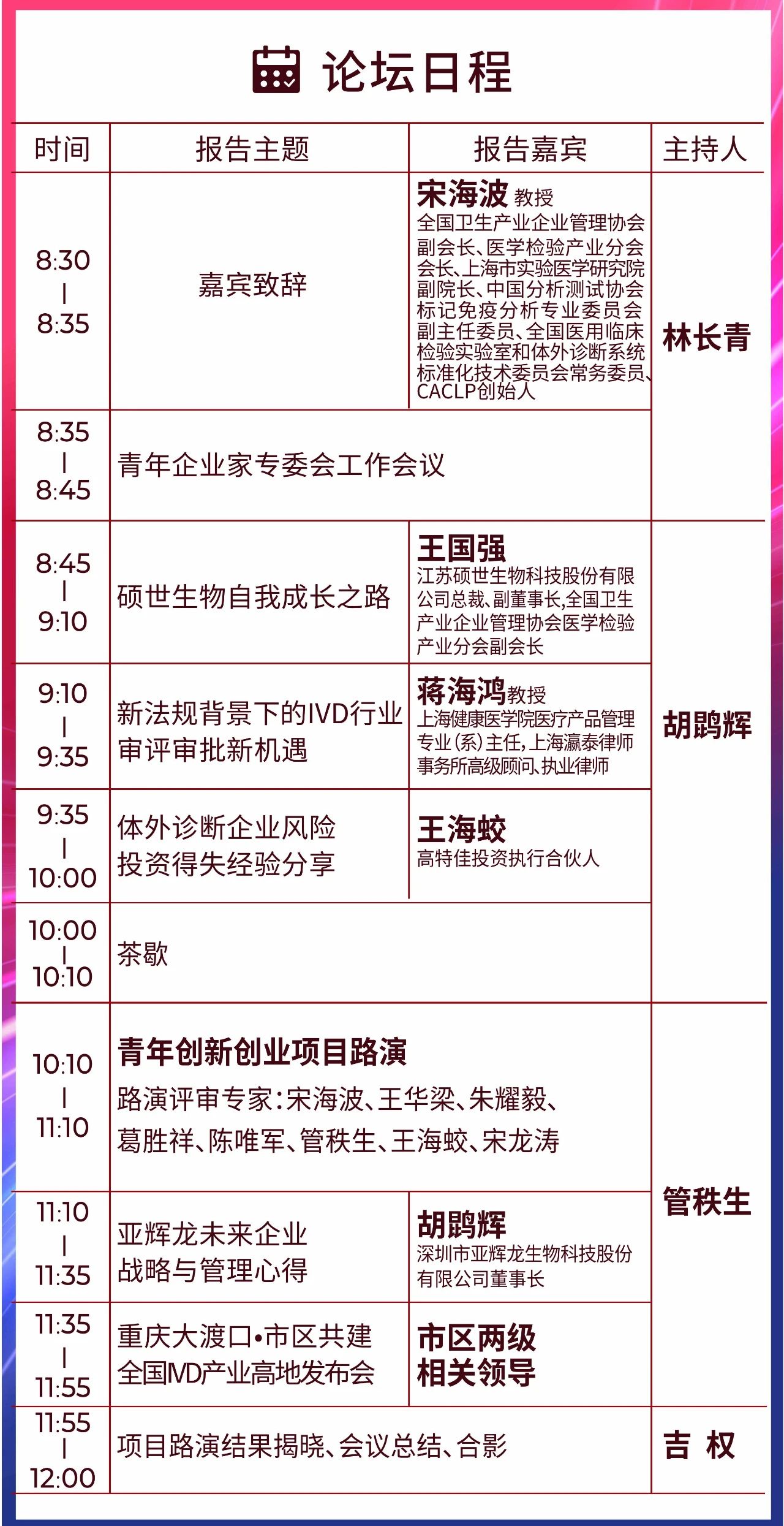 借第十屆中國體外診斷產(chǎn)業(yè)發(fā)展大會、“創(chuàng)之聲”第八屆中國實驗醫(yī)學(xué)大會、第二十屆中國國際檢驗醫(yī)學(xué)暨輸血儀器試劑博覽會、第三屆中國國際IVD上游原材料暨制造流通供應(yīng)鏈博覽會、第五屆中國IVD流通企業(yè)論壇、第三屆中國體外診斷關(guān)鍵原材料及零部件論壇之契機(jī),由全國衛(wèi)生產(chǎn)業(yè)企業(yè)管理協(xié)會醫(yī)學(xué)檢驗產(chǎn)業(yè)分會主辦的“亮·檢驗—第六屆體外診斷青年企業(yè)家論壇”將于2023年5月26日在南昌國際博覽城綠地鉑瑞酒店會議中心隆重舉行。