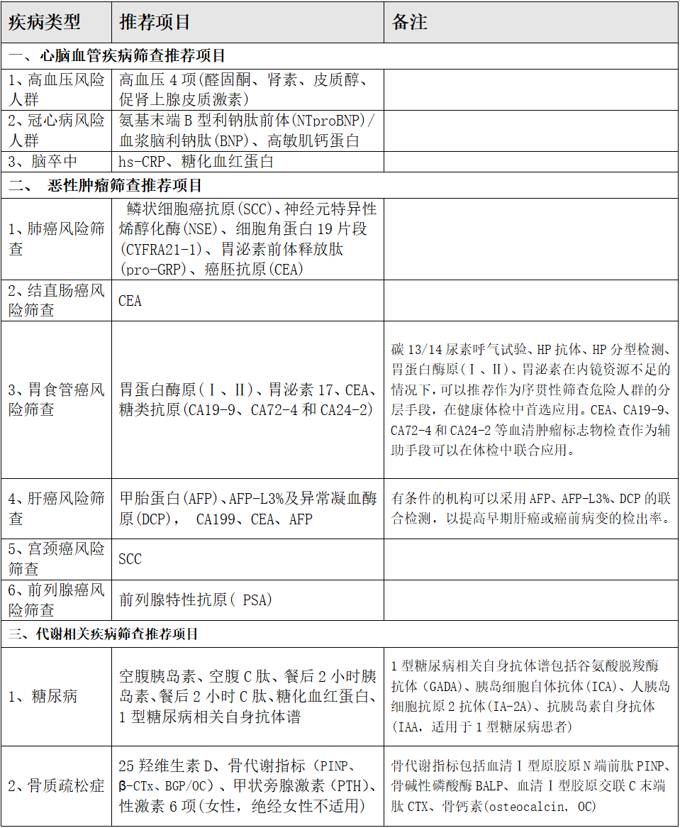 《健康體檢與管理》雜志編委會聯合北京醫學會健康管理學分會等學術組織,匯聚了全國健康體檢與管理機構80余位知名專家的意見建議,制定了成人個體化健康體檢基本項目和常見慢性病篩查體檢項目的推薦清單,形成《成人個體化健康體檢項目推薦專家共識》,已于近期發布。針對常見病和慢性病的健康體檢項目推薦清單,熱景生物多個項目獲得推薦(表1)。