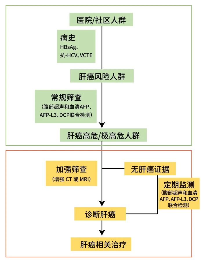 《方案》將病毒性、代謝性慢性肝病患者,特別是伴有肝纖維化、肝硬化患者等肝癌高風險人群列為重點監測對象。在隨訪管理過程中檢測血清甲胎蛋白(AFP)、甲胎蛋白異質體(AFP-L3)、異常凝血酶原 II(DCP)三項肝癌相關標志物,同時進行肝臟超聲彈性成像、肝臟超聲及其他影像學檢查。