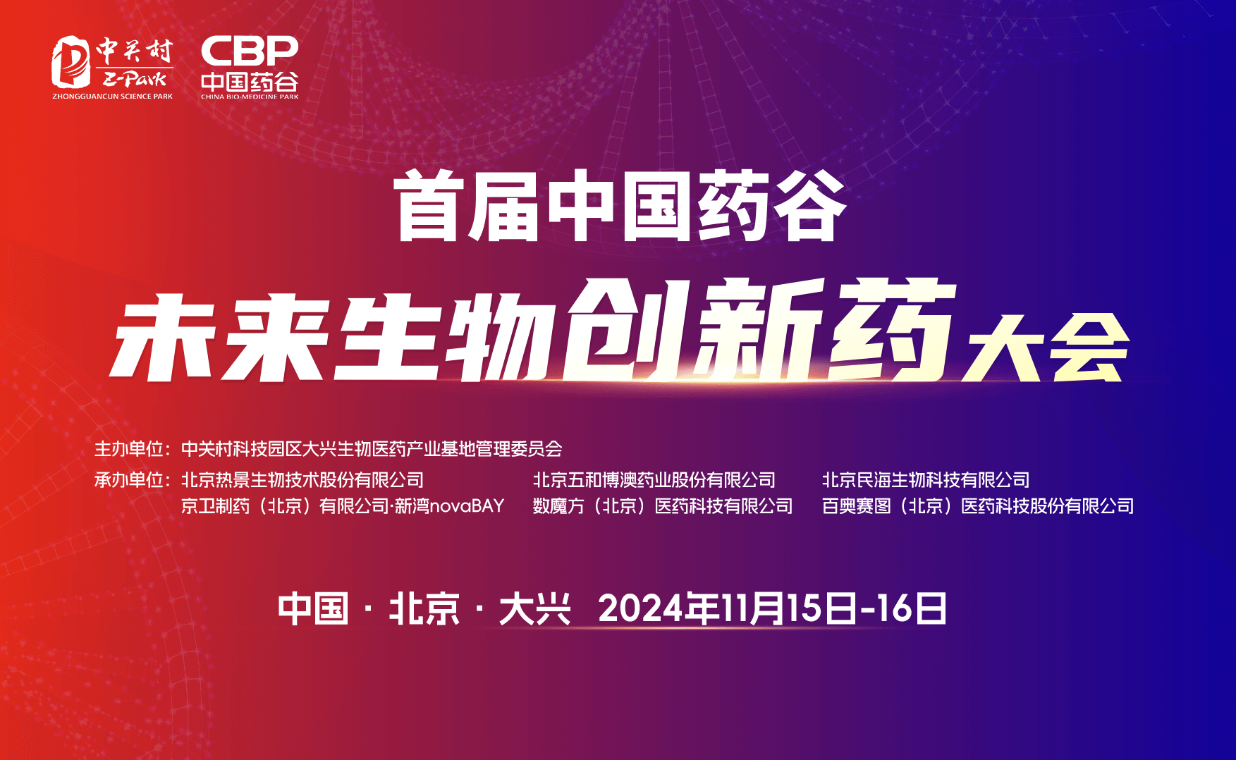 大興生物醫藥基地作為北京生物醫藥產業的重要承載區,正面臨產業發展的關鍵時期。為了提升大興區在全國生物醫藥領域的戰略地位,推動新質生產力發展,大興生物醫藥基地計劃舉辦“首屆中國藥谷·未來生物創新藥大會”。本論壇匯聚行業專家及優秀企業家代表,共同探討行業前沿趨勢,促進醫藥健康產業發展要素深度融合,進一步提升大興區在創新藥領域的影響力。將全球首創的科技成果寫在大興的土地上!讓大興成為全球首創藥落地首選地!