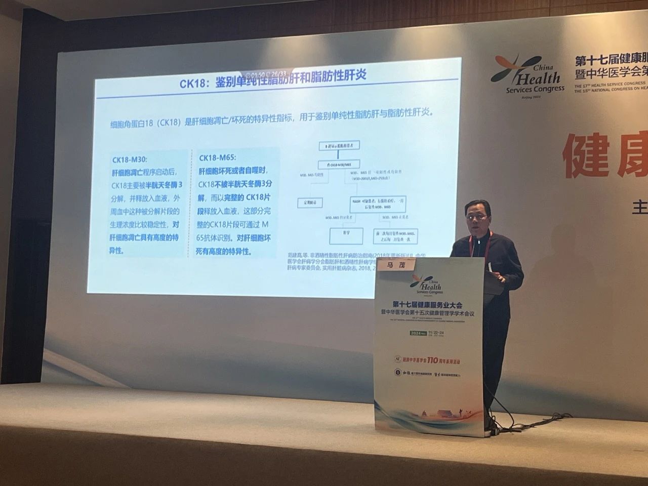 北京航天總醫院體檢中心張晗教授在專題講座中指出,細胞角蛋白18(CK18)片段在代謝相關脂肪性肝病MAFLD的早期篩查、疾病進展監測和治療效果評估中具有重要價值。全球約有16.6億MAFLD患者,中國城市人口中MAFLD患病率為28.77%。CK18-M30和M65片段與肝細胞凋亡和壞死相關,其水平隨疾病嚴重程度升高。CK18在診斷MASH(代謝相關脂肪性肝炎)方面的性能優于傳統肝酶指標,是目前最認可的MASH輔助診斷指標。張晗教授強調,多學科協作管理是MAFLD治療的關鍵,通過綜合管理和個性化治療,可以有效改善患者的預后。